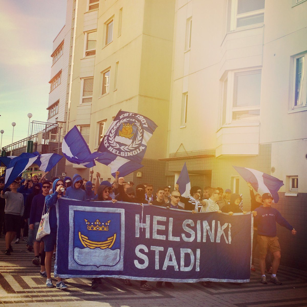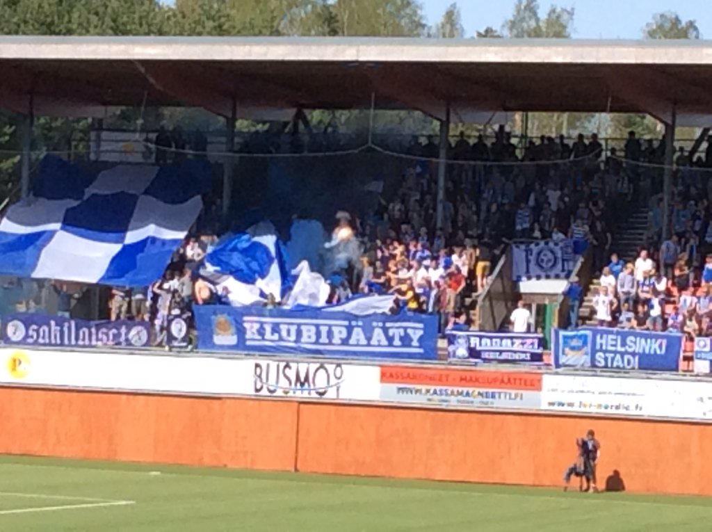 HJK:n kannattajat matkustivat runsaslukuisina junalla myyrmäkeen ja marssivat Myyrmäen Jalkapallostadionille PK-35 Vantaan vieraiksi. Kannattajat järjestivät corteon stadionille ja marssivat soihtujen kanssa. Stadionilla taas nähtiin pienimuotoinen tifo ja hieno soihdutus. Kuvia ja tunnelmia näet alapuolelta!